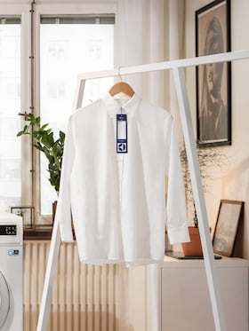 Izkariniet savu kreklu vannas istabā, kamēr esat dušā, un noskaidrojiet, kā tvaiks var atsvaidzināt jūsu drēbes. Papildu mitrums izlīdzinās jūsu krekla krokas, un krekls kļūs svaigs. Lai izgludinātu apģērbu ātrāk, izmēģiniet mūsu veļas mazgājamās mašīnas ar SteamCare. Tvaika funkcija ne tikai samazina apģērba krokas, bet arī atsvaidzina to.