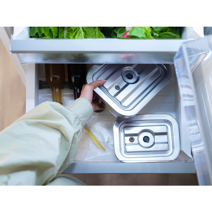 ¹Pamatojoties uz uzņēmumā veiktiem testiem, salīdzinot ābolu, avokado un laša uzglabāšanu vakuuma traukā ar uzglabāšanu ledusskapī atvērtā traukā.