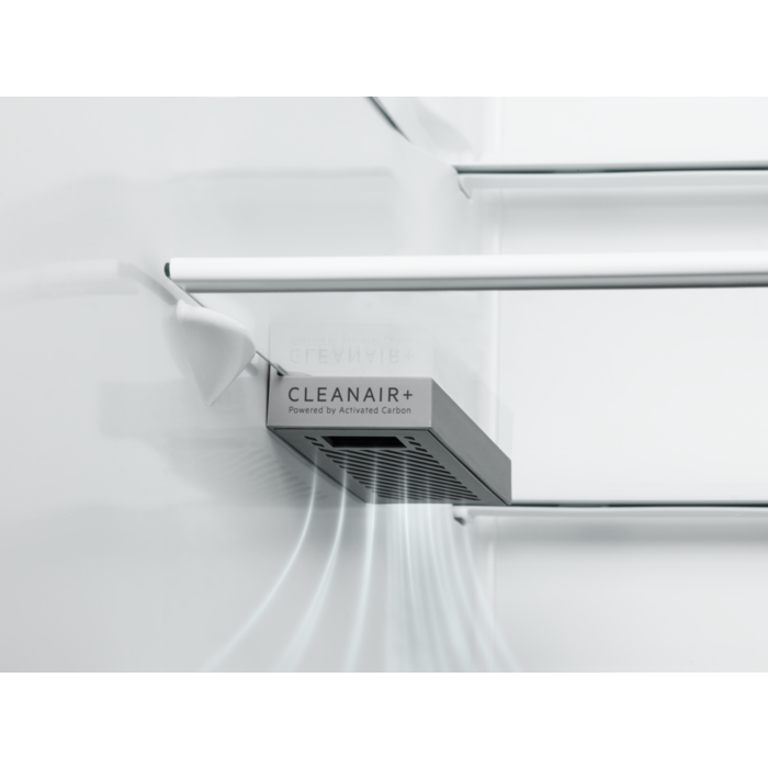 Nodrošiniet svaigumu ledusskapī, pateicoties CleanAir+ filtram ar FACT® tehnoloģiju. Izmantojot dabiskās aktīvās ogles FACT® tehnoloģiju*, līdz pat 90 % nevēlamo aromātu tiek absorbēti 15 minūtēs**.