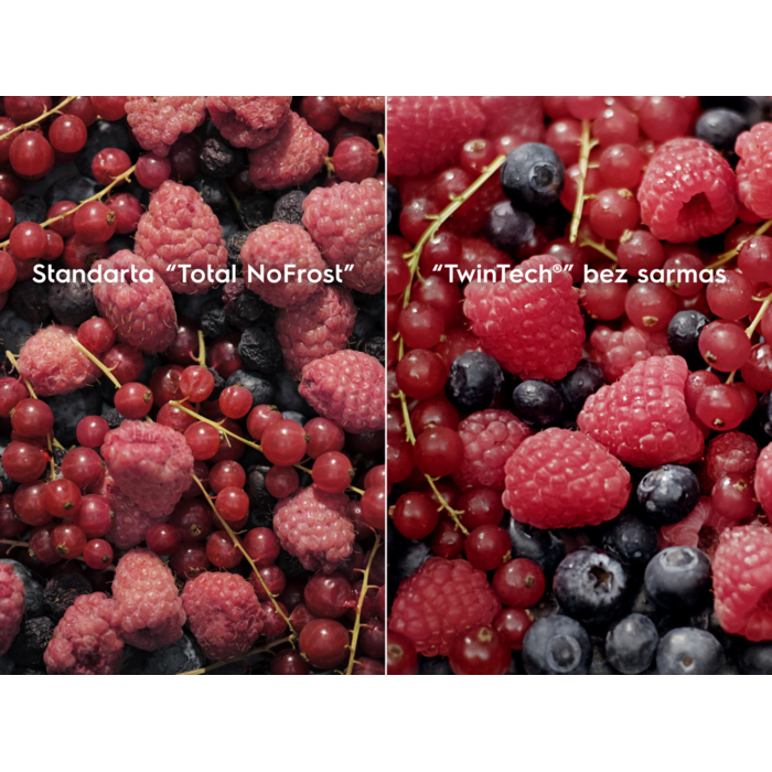 Ar TwinTech® un NoFrost pārtika tiek saglabāta pareizā mitrumā un ir sulīga