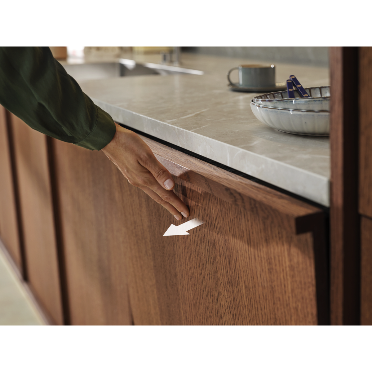 Atvēršana bez roktura, lietojot durvis “Push2Open”. Nevainojama integrācija