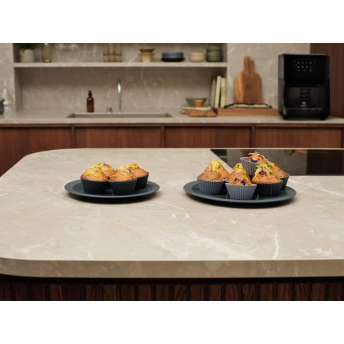Gatavojiet dažādas receptes ar 5 dažādajiem gatavošanas režīmiem 1 virsmas cepeškrāsnī, ietverot tādas funkcijas kā cepšana ar karsto gaisu, uzsildīšana, žāvēšana un rotācijas funkcija. Liela ietilpība, 12 l ģimenes maltītēm. Stikla durvis ļauj apskatīt ēdienu, neatverot durvis.