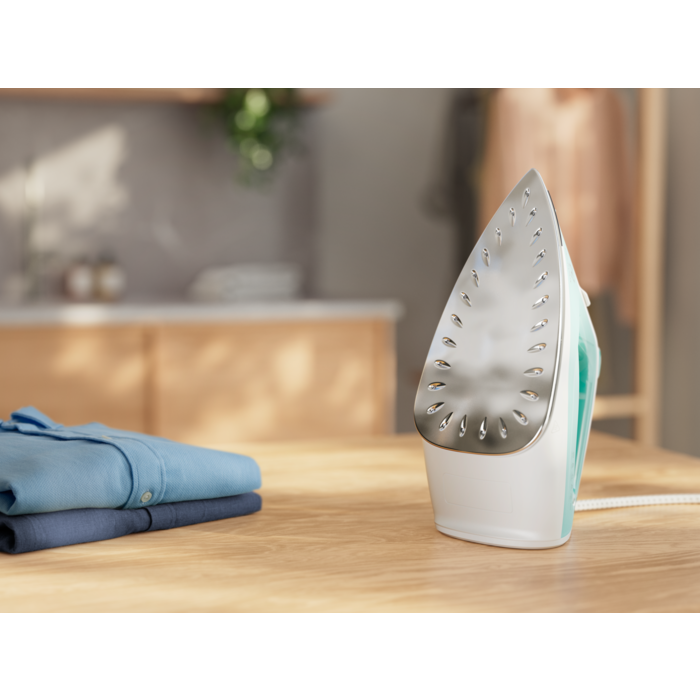 Care 500 tvaika gludeklis ātri uzsilst un gatavs izgludināt saburzīto apģērbu. Šo kompakto modeli ir viegli lietot un uzglabāt, un tam ir ilgtspējīgs iepakojums, lai veicinātu oglekļa izmešu samazināšanu.