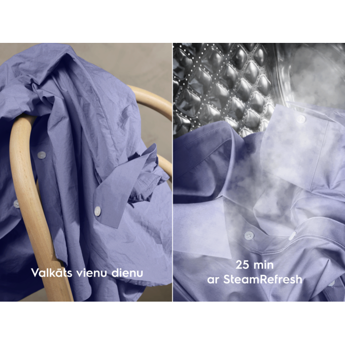 *Pamatojoties uz iekšējo testēšanu ūdens patēriņam, sal. SteamRefresh ar pilnu mazgāšanas ciklu 30°C izsmalcinātā apģērba programmā 1 kg veļas.