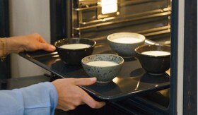 Pievienojiet pienam jogurta kultūru, rūpīgi samaisiet un pārlejiet burciņās vai bļodiņās. Ievietojiet tās Electrolux CombiSteamPro cepeškrāsnī un izvēlieties jogurta režīmu. Pateicoties tvaikam un 42 grādu temperatūrai, krāsns nodrošinās optimālus apstākļus, lai attīstītos nepieciešamās jogurta baktērijas. Gatavo 6–8 stundas.