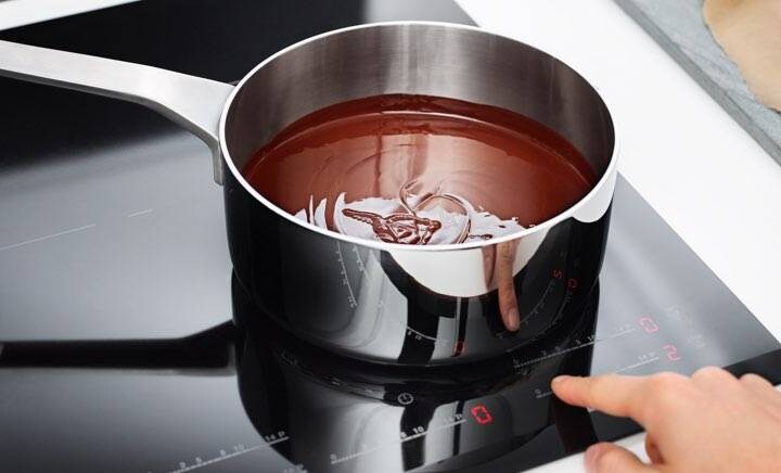 1Izkausējiet šokolādiIzmantojiet indukcijas plīti, lai maigi izkausētu 1/2 tases tumšās šokolādes, līdz iegūta pilnīgi viendabīga masa.