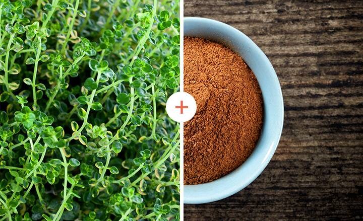 Kanēlis ar timiānuKanēļa siltā smarža ideāli apvienojama ar timiānu — izmēģiniet to ar vistu.