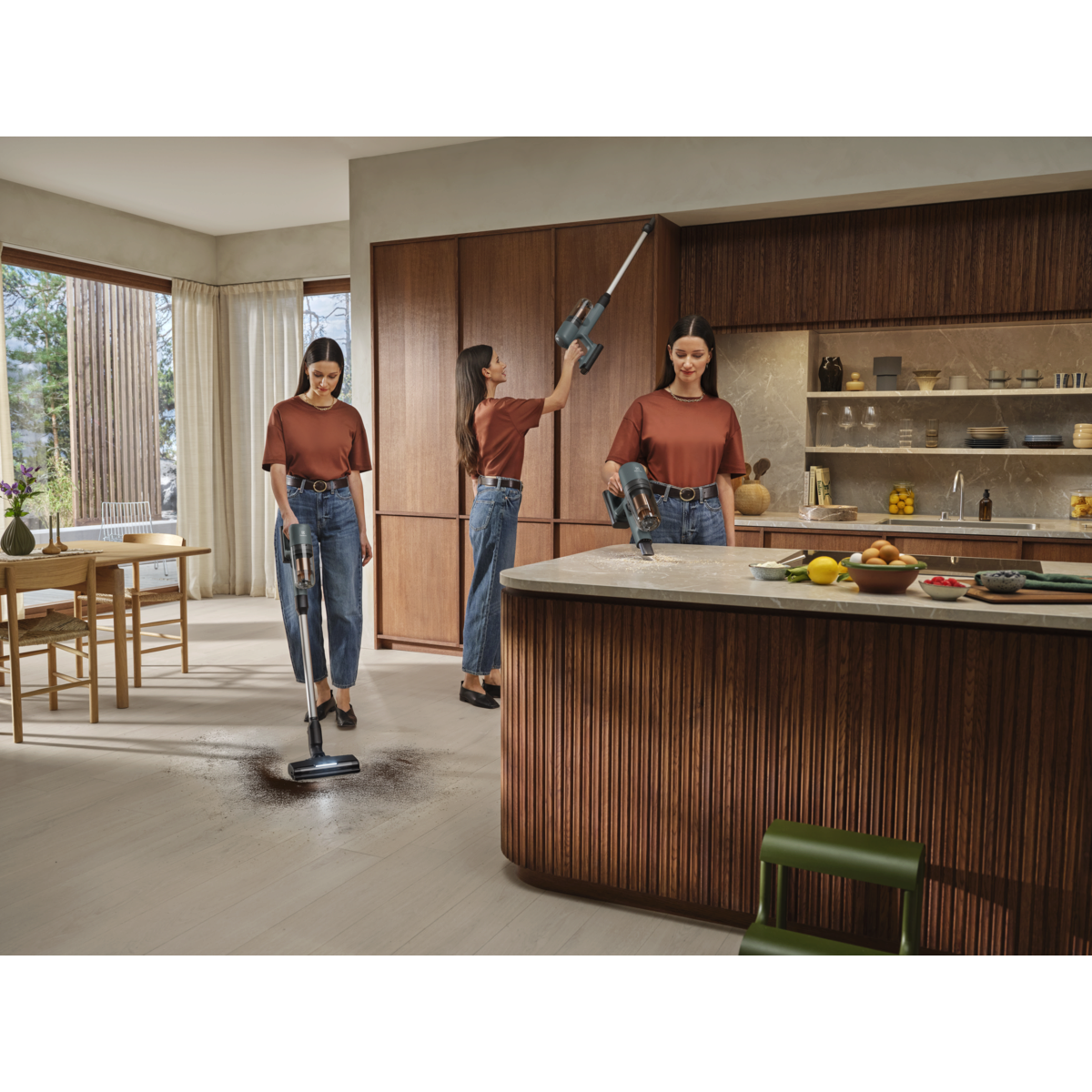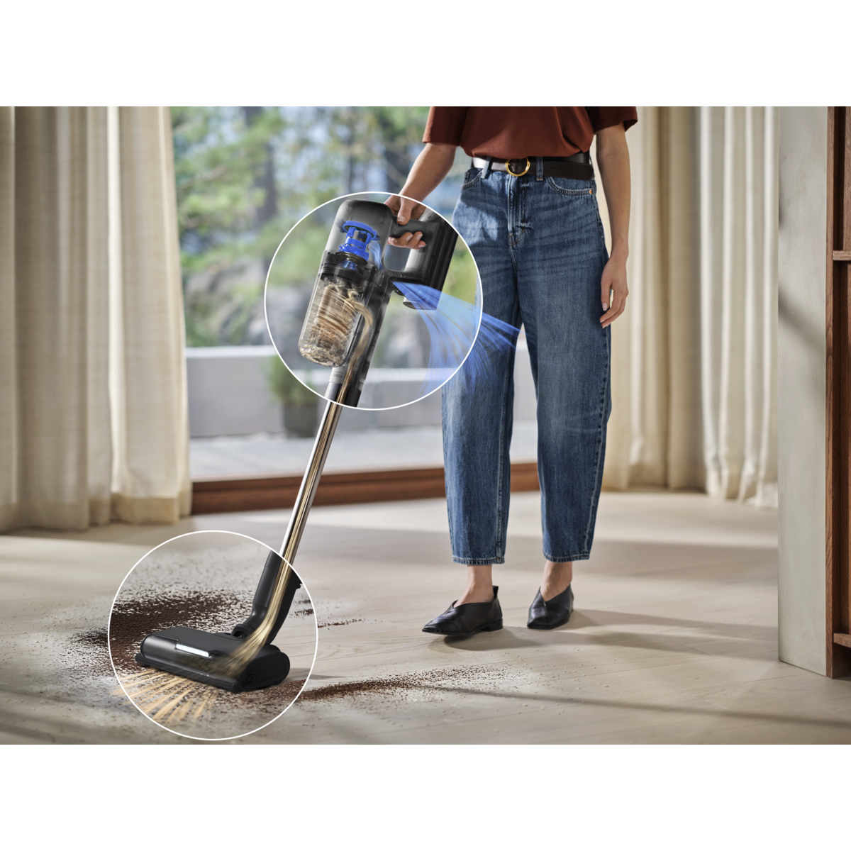 700. sērijas bezvadu putekļu sūcējs ir tikpat viegls rokā, cik jaudīgs uz jūsu grīdām. Pateicoties īpaši ērtai lietošanai, šis kompaktais putekļsūcējs apvieno visu nepieciešamo jaudu rūpīgai tīrīšanai — ar bezvadu ērtībām.