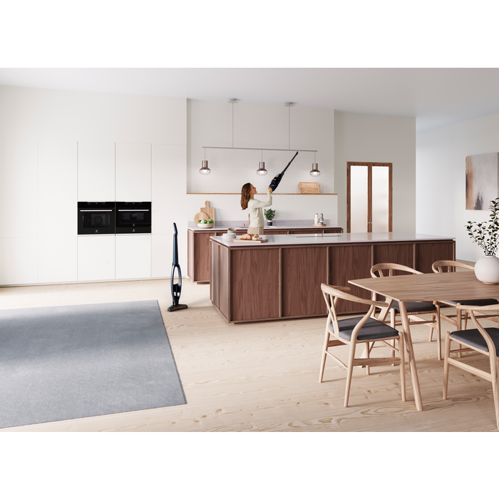 Bezvadu putekļu sūcējs Well Q7 ar ērtu noņemamu rokas putekļu sūcēju un piederumiem , kas ļauj ātri pāriet no grīdas tīrīšanas uz grūti sasniedzamām vietām un otrādi