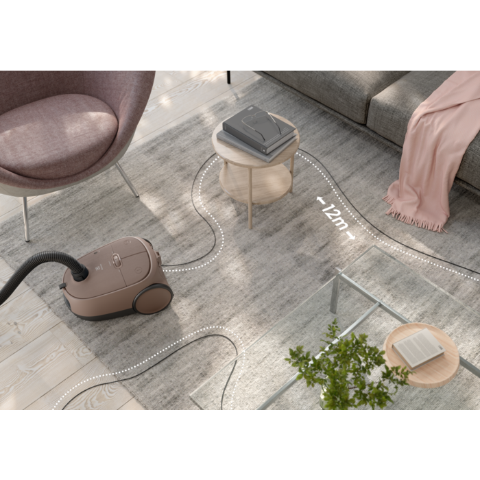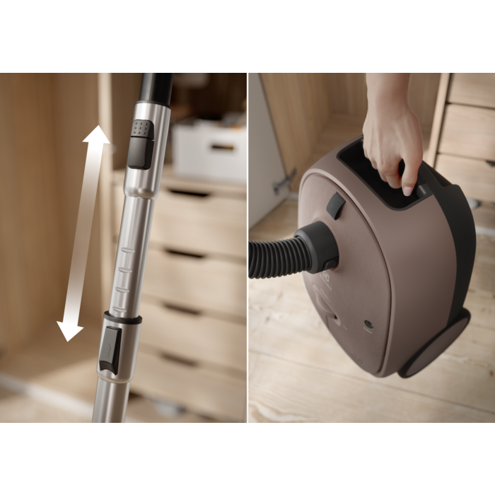 Ar s-bag® putekļu maisiņu, 12m darb. rādiuss, telesk. caurule, mazgājams Hygiene filtrs, 73dB, gaiši brūnā krāsā, 6.92kg