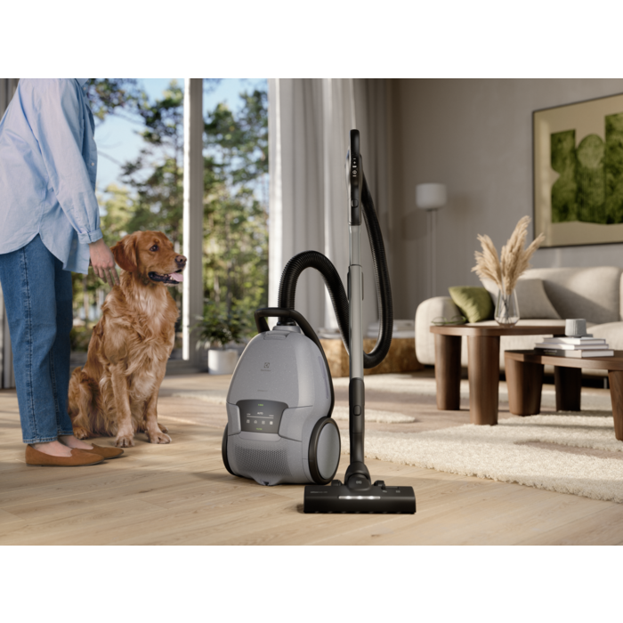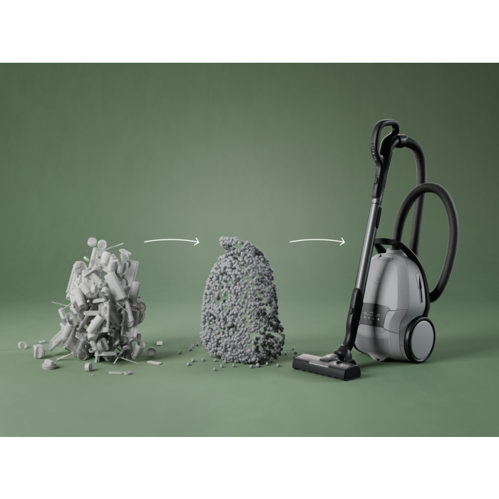 Tāpat tam ir liela jauda, kas automātiski pielāgojas virsmām. Tas lieliski savāc mājdzīvnieku spalvas no paklājiem, jo īpaši palīdzot tiem, kuriem ir mājdzīvnieki. Putekļsūcējs un galvenais uzgalis ir izgatavots no līdz pat 48 % pārstrādātas plastmasas.*