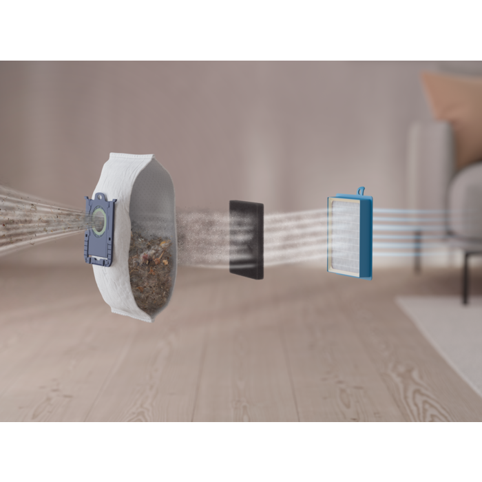 Pure D8, ar s-bag® putekļu maisiņu, 600W, 12m darb. rādiuss, telesk. caurule, mazgājams Hepa E12 filtrs, 57dB, 7.19kg